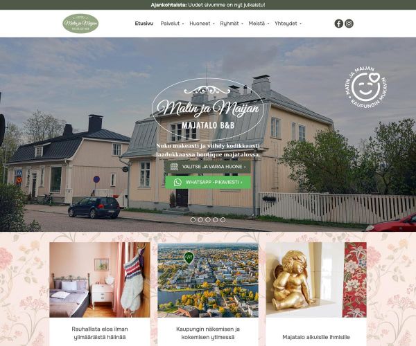 Matin ja Maijan majatalon sivustouudistuksessa päivitettiin sivuille lisää kuvia tunnelmallisesta majatalosta. Sivustolla on englannin kieliversio .. Lue lisää