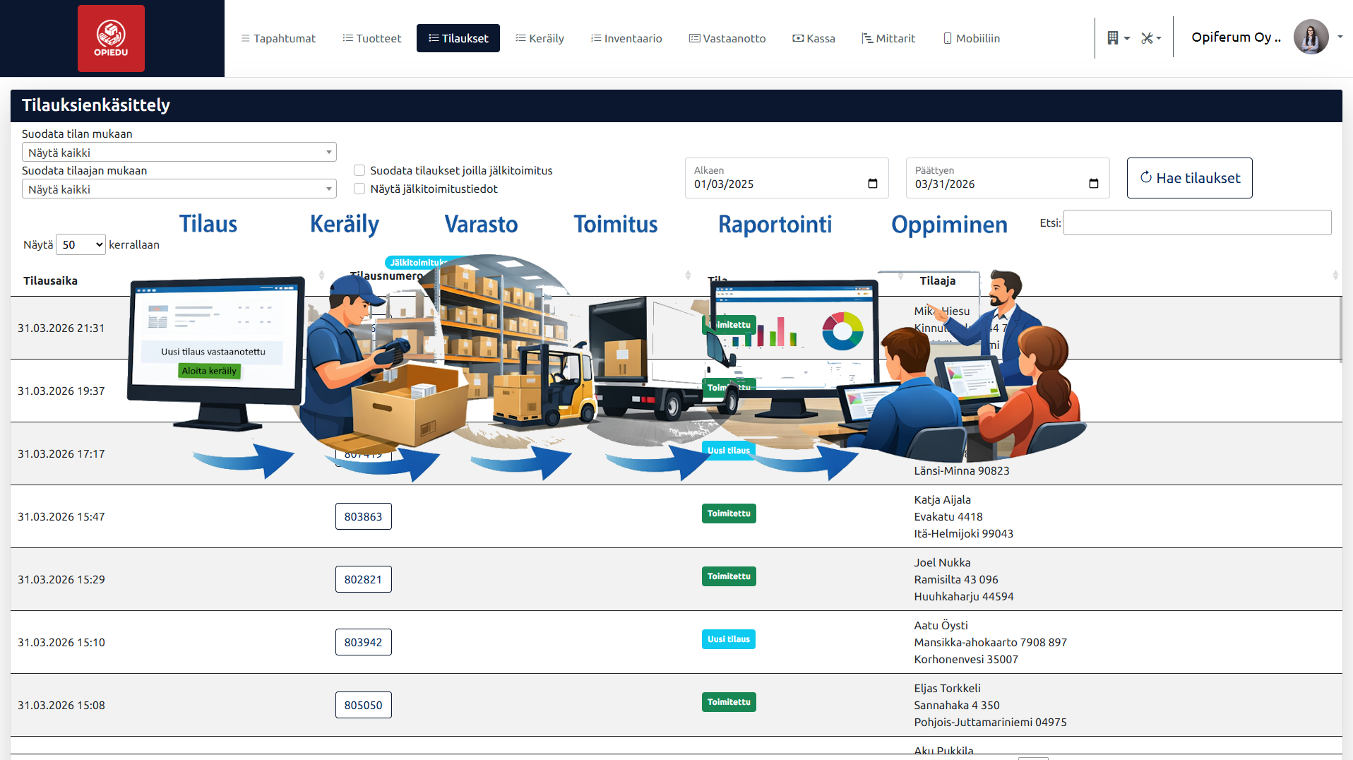Tarjoamme myös harjoitteluympäristöt, lisäpalvelut sekä tarvittavat laitteet, kuten mobiilipäätteet, tarratulostimet ja viivakoodinlukijat.