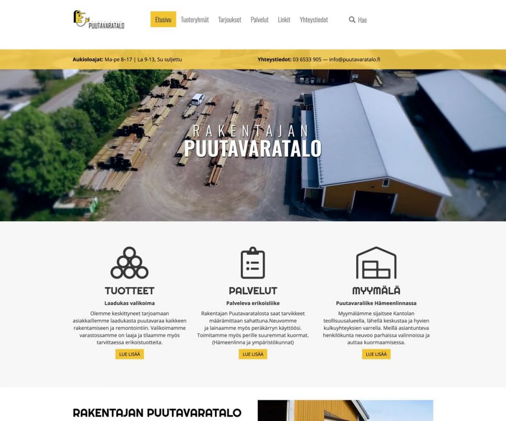 11.06.2019Puutavaratalo on hämeenlinnalainen puutavaran myyntiin erikoistunut liike. Yrityksen kilpailijoita ovat suuremmat rakennustarvikeliikkeet, mutta Puutavaratalon valikoima on laadukkaampaa. Sivuston tarkoitus on siis vahvasti hankkia uusia asiakkaita.