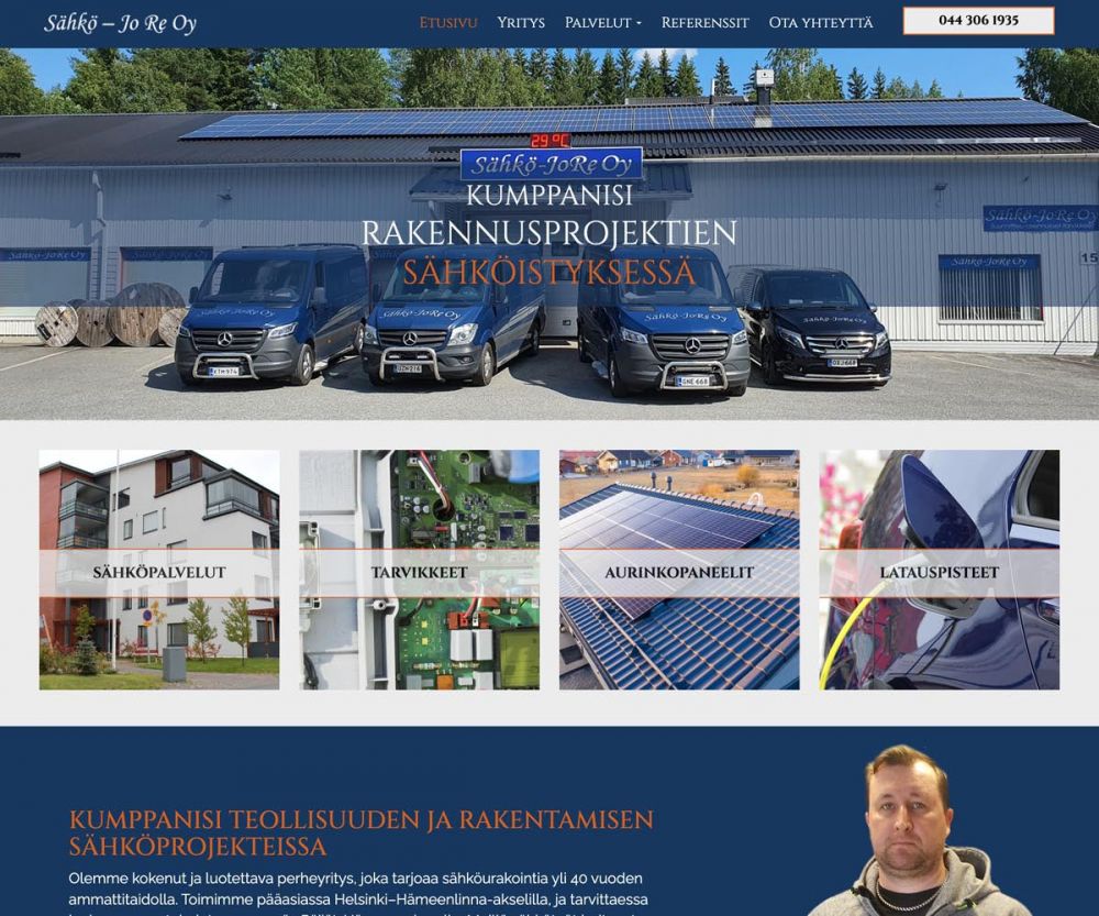 Sähkö-Jo Re Oy18.12.2024Sähkö-JoRe on Etelä-Suomen alueella hyvin tunnettu keskisuuri sähköyritys. Entiset sivut eivät olleet vielä ihan tiensä päässä, mutta yritys laajensi palveluitaan uusille alueille ja samalla yrityksen johto alkoi eläköityä nuorempi polvi ottaa sitä haltuun. Niinpä päädyttiin uusimaan sivut. Yrityksen asiakkaat tulevat pääosin puskaradiolla tai ovat jo aiempia asiakkaita. Kuitenkin yrityksessä nähdään verkkosivujen asema juuri oikein – hyvään tilanteeseen ei saa tuudittautua, vaan verkossa pitää näkyä jatkuvasti edustavasti, ylläpitää omaa markkina-asemaa ja mikäli uusia asiakkaita tulee runsaasti, palkata lisää työvoimaa. Näin siis sivut eivät ole pelkät brändisivut, vaan ne rakennettiin nousemaan tehokkaasti hakukoneissa. Aurinkopaneeleihin ja sähköautojen latauspisteisiin laajentuminen Tagit: Opiportal Verkkosivusto Takaisin